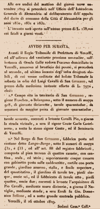 Pubblichiamo questo articolo comparso nel 1829 su Gazzetta Piemontese in cui vengono riportati alcuni toponimi sangermanesi tuttora scomparsi