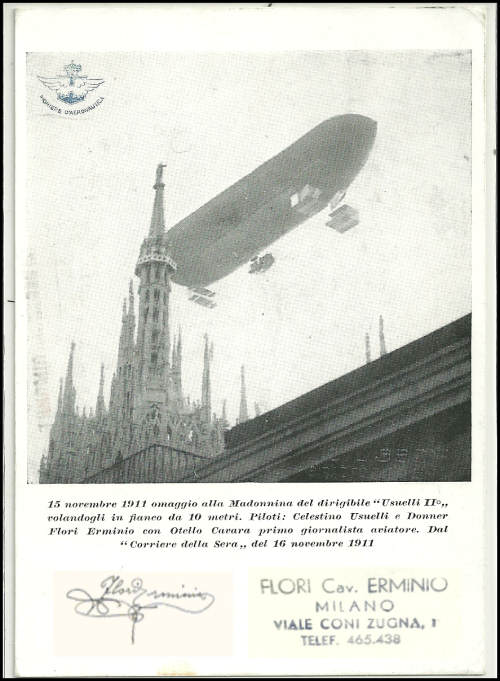 Arrivo a Milano di Celestino Usuelli (Cartolina autografa del suo aiutante Erminio Flori ) |