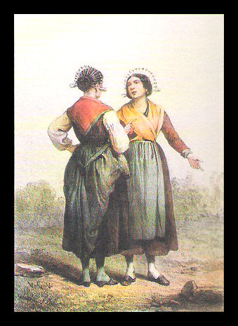 A San Germano osservammo un costume molto grazioso tra le ragazze del paese, e tra le donne di tutte le età; chi era già in età avanzata, continuava a mantenerlo senza variazioni. Alludo all’indossare spilli d’argento e lunghi fermacapelli nei capelli dietro, con le lunghe trecce legate assieme da uno stretto nastro, e quindi divisi in due code. Queste venivano allora arrotolate in forma tonda dietro alla testa e ben fermate alla radice dei capelli da quegli spilli ornamentali, che sono lunghi quasi un dito in lunghezza e hanno una testa grossa come perline. Questi punti formano i raggi di un cerchio, e spuntano apertamente dalle ciocche corvine che supportano. Il paesaggio qui era piatto e poco interessante, ma è da segnalare la presenza di molte terre da pascolo. Gli alberi consistevano principalmente in piccoli salici, piantati in file diritte. Non c’erano case di campagna, o borgate, in vista, e tutto sembrava così insulso e tremendo come in Olanda. ----------------- La Baille arrivata a Vercelli nota che i costumi del posto si differenziano da quelli di San Germano con abiti più pittoreschi e una diversa foggia degli spilloni che ornavano i capelli.