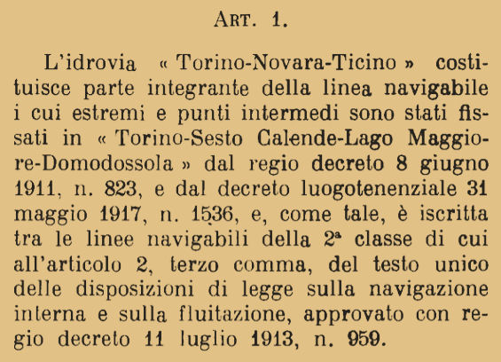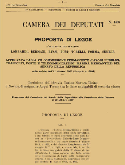 progetto dell'Idrovia Torino - Novara - Ticino di cui riportiamo un