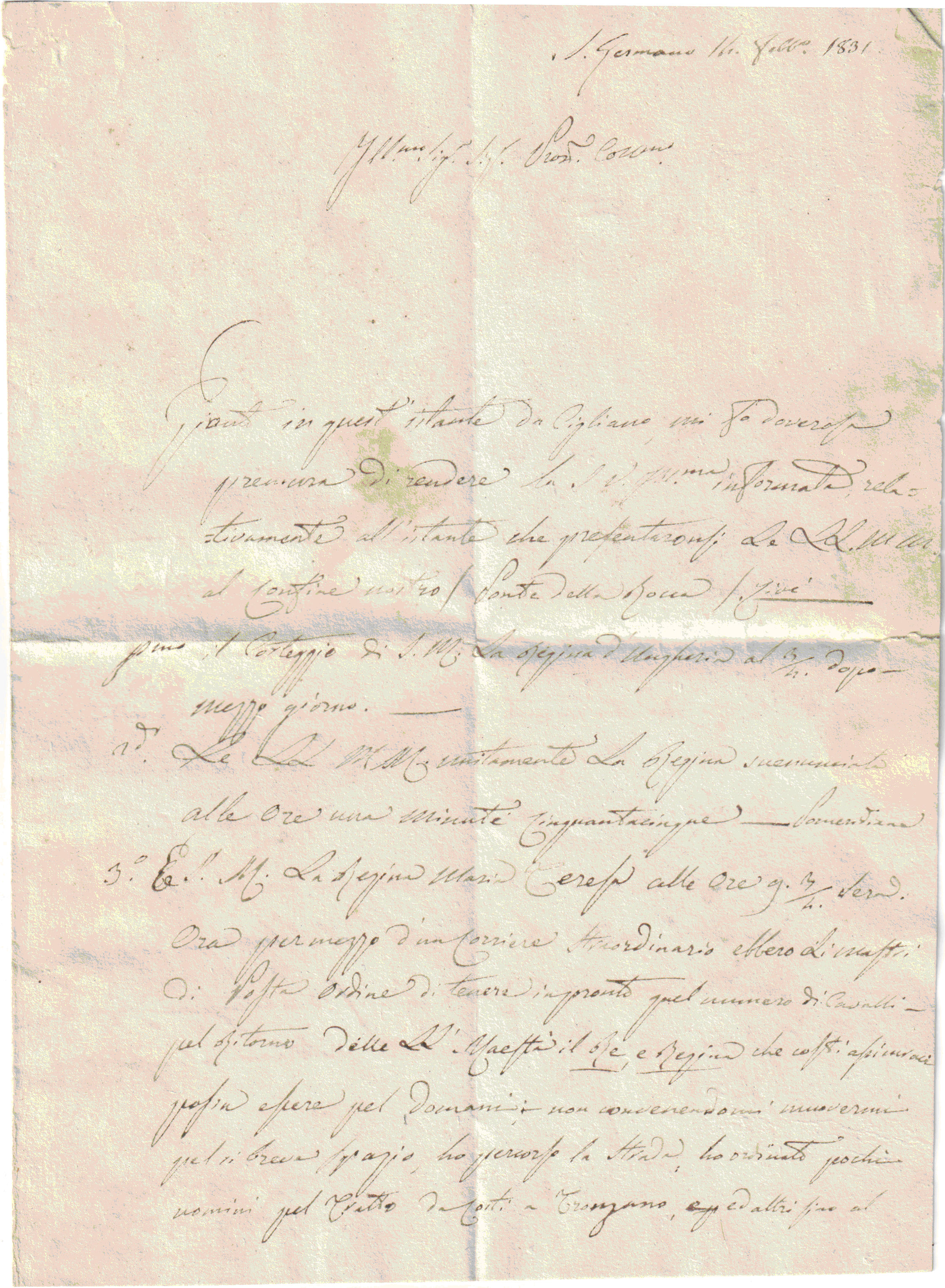 Regina passa da San Germano e in tale occasione viene inviata questa